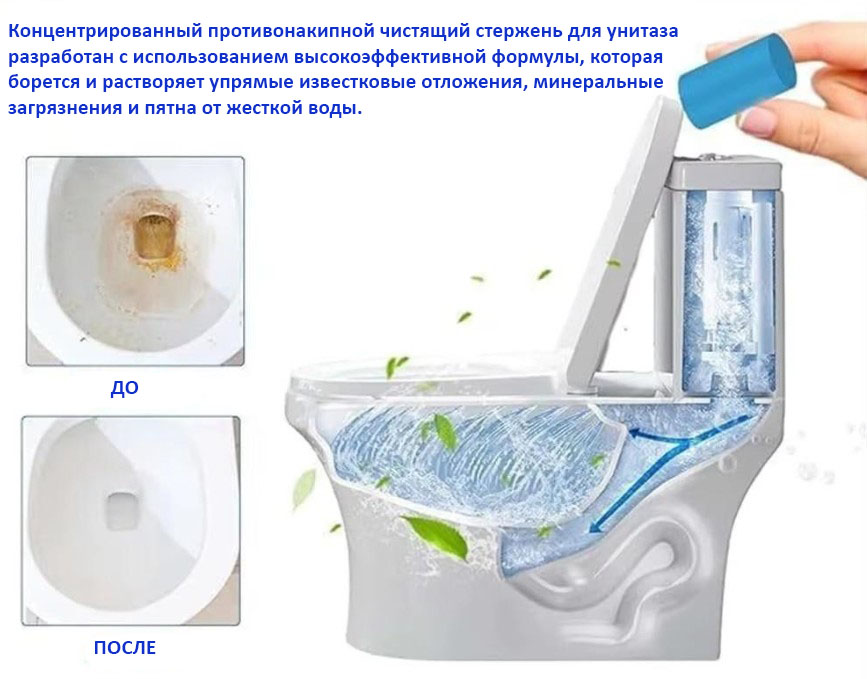 Концентрированный противонакипной чистящий стержень для унитаза разработан с учетом максимального удобства использования. Достаточно просто положить стержень в бачок унитаза и дать ему постепенно раствориться. В процессе растворения он высвобождает чистящие средства, которые непрерывно работают, чтобы бороться с накипью и ржавчиной и предотвратить будущие отложения.
