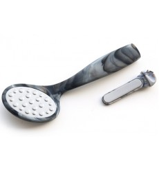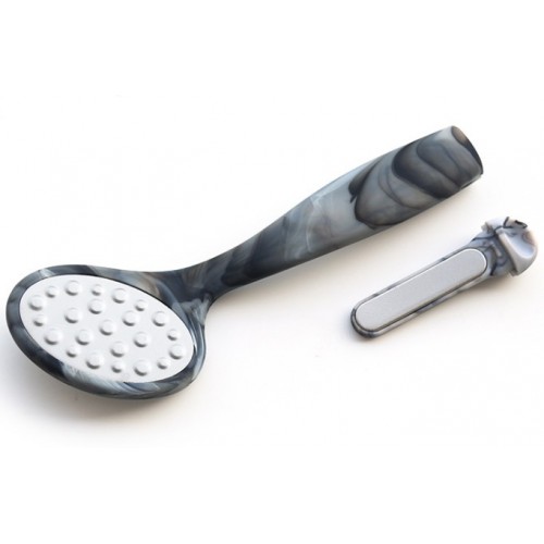 расположенная в ручке пилки, поможет справиться с проблемными местами на пальцах ноги и руки. На металлической поверхности с помощью лазера сделаны микрозубчики, которые за 10 пропилов снимут 1 мм огрубевшей кожи. Другая сторона тёрки отполирует уже подготовленный участок до идеального состояния. Проводить такую процедуру можно как на распаренной коже ног, так и на сухой. Между подходами нужно промывать рабочую область в тёплой воде. По завершении процедуры следует намазать ножки увлажняющим кремом, при необходимости продезинфицировать тёрку.